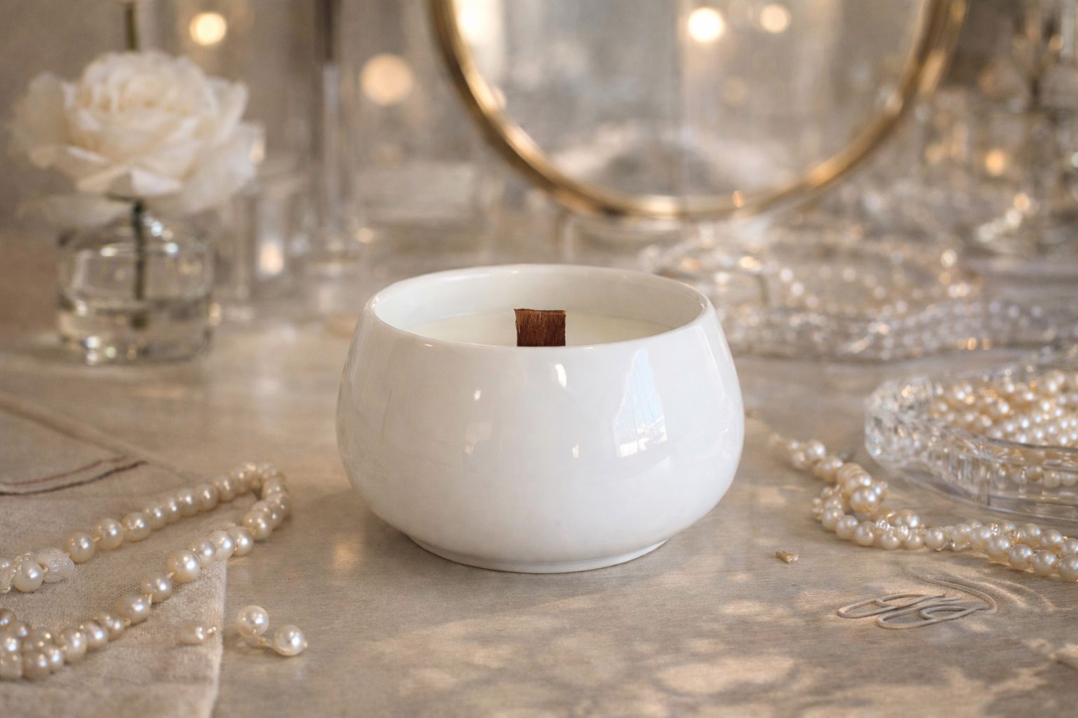 Vela aromática con una fragancia elegante, sofisticada y atemporal. Sus notas florales suaves se mezclan con matices empolvados, toques cálidos  y un fondo delicadamente amaderado que envuelve el ambiente con distinción. Un aroma refinado y femenino que aporta lujo, calma y personalidad a cualquier estancia. Ideal para quienes buscan una esencia clásica, intensa y llena de encanto.